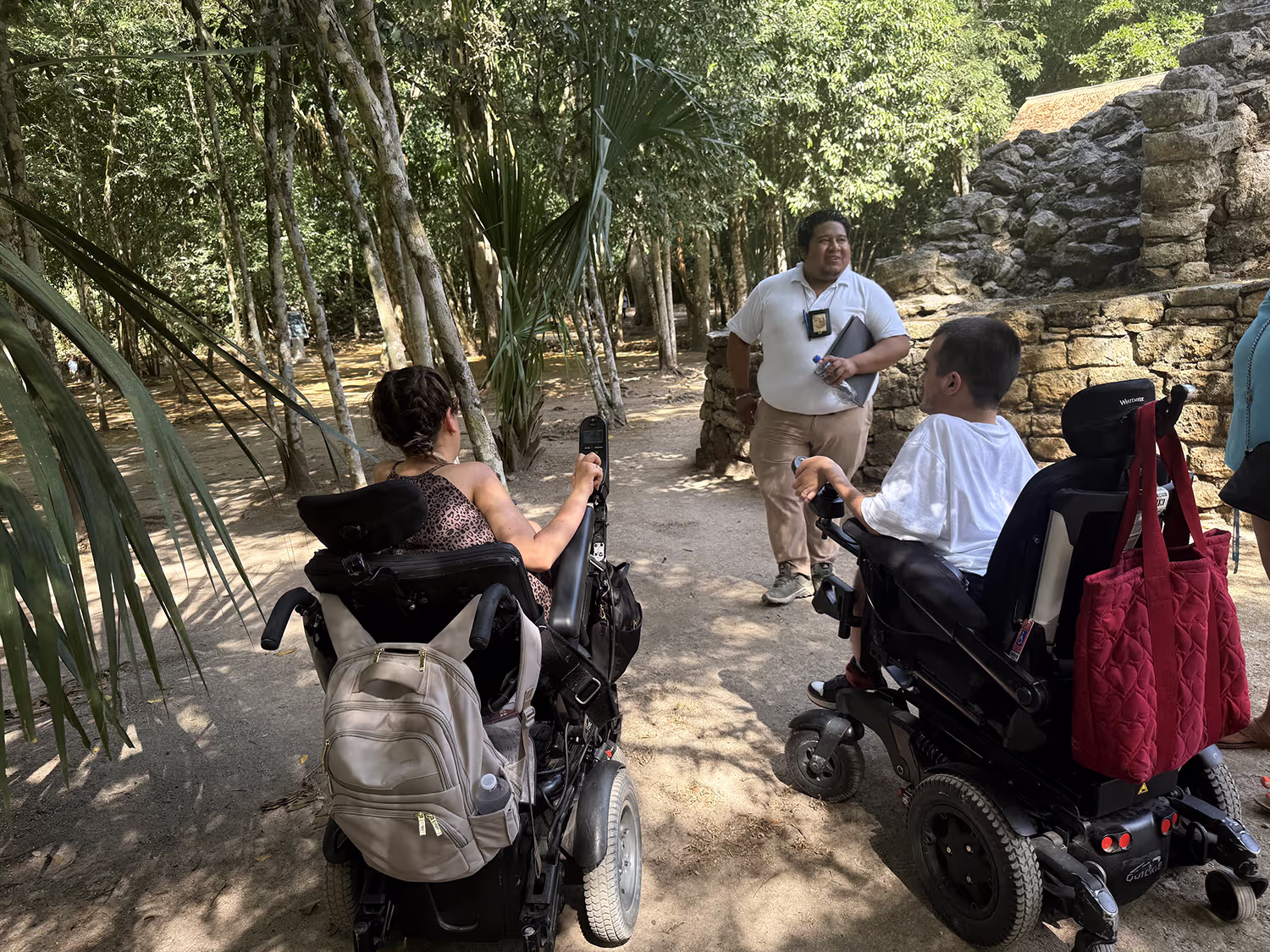 Cobá is not the most accessible site I've ever visited. The terrain is challenging and I needed real help at multiple points to get through it. But getting to roll through an actual Mayan jungle, stop at ball courts that are over a thousand years old, learn from a guide whose ancestors built what you're looking at, and come out the other side at one of the tallest pyramids in the Yucatan is a pretty remarkable afternoon. I'm glad we did it.
